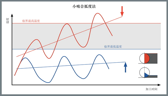 為銑削加工計算的補償因子指出了多種途徑來改變與刀具嚙合量有關(guān)的切削參數(shù),從而保持所需的加工溫度。如果溫度過低,則無法使刀具材料達到最大的韌性,同時還可能會形成積屑瘤(積屑瘤是導(dǎo)致切削刃斷裂或微崩的情況)。如果溫度過高,則會加快切削刃磨損或刀具變形。通過參數(shù)調(diào)整進行補償可以平衡熱負荷與機械負荷,優(yōu)化刀具壽命和生產(chǎn)率。